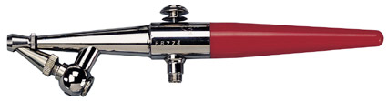 An airbrush, as the name implies, uses air to atomize paint into a fine mist that is evenly applied to the work surface. The two main variables in this process are the air pressure and the paint consistency.