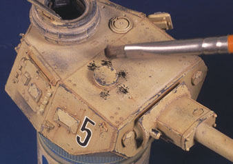 - WÜSTENSTAUB: Die Pigmente direkt auf mattem Untergrund auftragen. Achtung: Auf glänzendem Untergrund angebracht, verfliegt das Pulver schnell. - RUSS: Schwarze Farbe verwenden - VERROSTETE OBERFLÄCHEN: So etwa die Auspuffrohre angerosteter Fahrzeuge