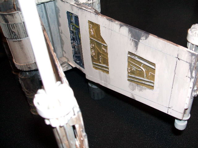 Once all the sub assembly were completed I spent a good few hours test fitting all the parts to make sure that the wings had the correct angle and were secure within the slots I had built into the main hull. The cockpit was made when all the main structures were together. Final panel detailing was added next. Then the whole model was painted with Humbrol paints and then dirtied down to give that well used look. I lost count how many parts I cut for the X wing but it was a great many. The overall look was good and the model is as far as I can tell a little bigger than the originals.