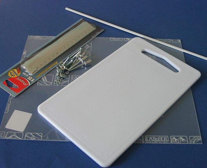 | Voici comment bricoler facilement une petite planche à plier sans se ruiner. Je n'ai pas prévu de réinventer la poudre, j'ai tout bonnement tenté de reproduire différents outils vendu dans le commerce et tout ça pour moins de 10 Euros de matériel. Voici nos fournitures , achetés en grande surface ou dans un magasin de bricolage.