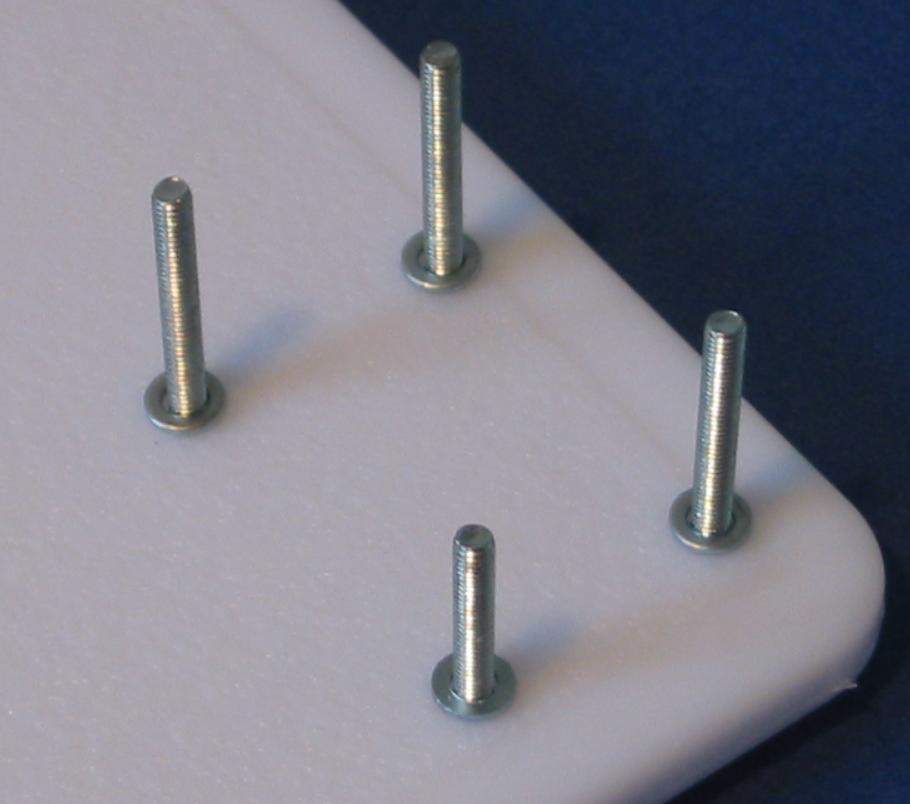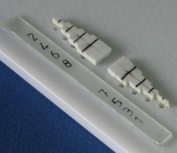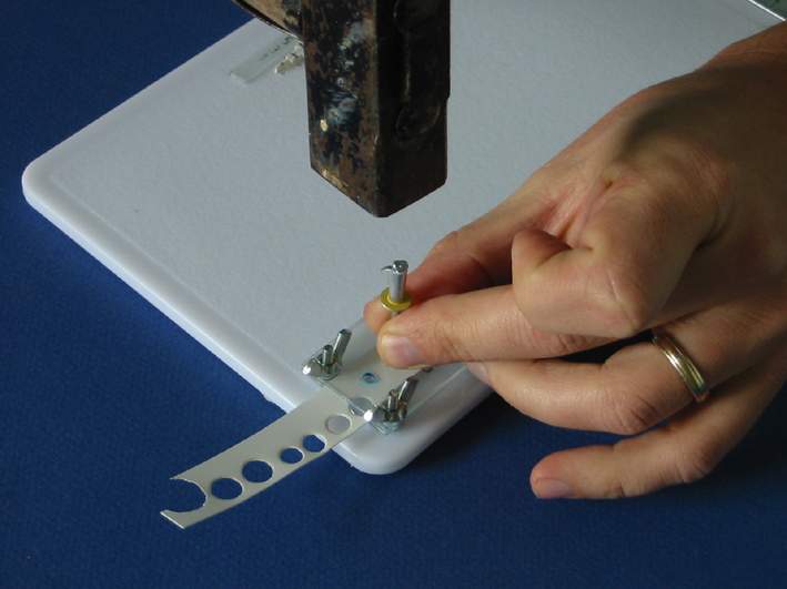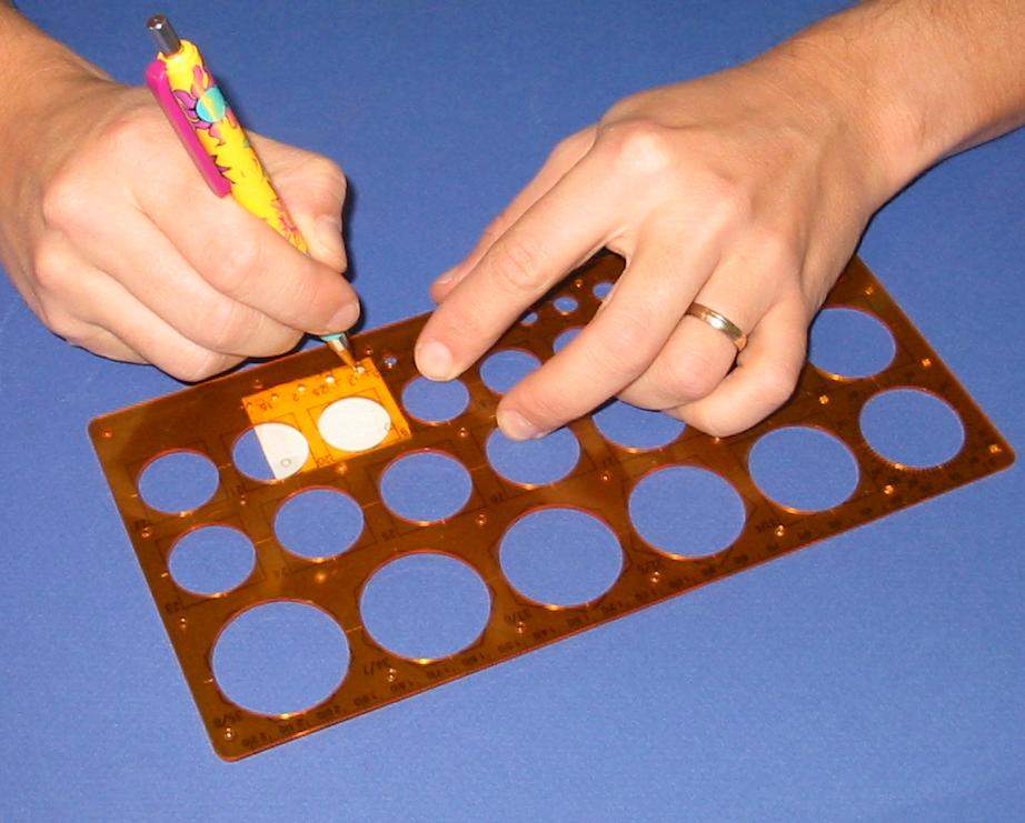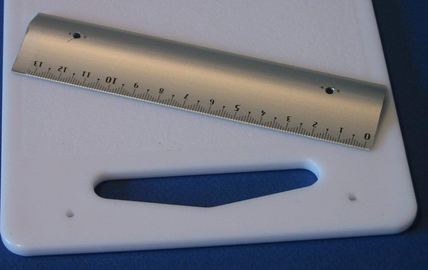 I ) Le plieur de photo découpe J'ai utilisé comme base ma planche à découper qui viendra supporter tous mes "outils". J'ai recoupé ma règle d'écolier à la longueur voulue soit 14 cm La règle est de forme légèrement bombée ce qui permettra en appuyant à l'arrière de soulever facilement la règle pour y coincer la pièce de photo découpe. Elle est percée en 2 endroits pour recevoir 2 vis avec leur écrou papillon afin de faciliter son blocage. Et voila de quoi plier facilement des photo découpe ou des feuilles d'alu etc. II ) L'emporte-pièce maison. Histoire de couper facilement des rondelles de carte plastique voici un petit emporte-pièce maison pour des diamètres de 1, 1.5, 2, 2.5 mm. Dans une feuille de plexiglas: on découpe 2 plaquettes de 3 x 4 cm A l'aide d'un trace cercle on dessine les trous destinés à recevoir les vis ainsi que les trous de perçage. On scotche les 2 plaquettes sur la plaque de base pour effectuer le perçage Et voici notre ensemble prêt à être monté. Les vis sont des vis de 30 x 25 Les 2 rondelles par vis servent à récupérer le disque de plastique une fois découpé. Première plaquette Une rondelle d'entre toise pour faciliter la manipulation de la plaquette La deuxième plaquette est posées le tout sera maintenu par 4 écrous papillons. Afin de faciliter le perçage j'ai repéra mes différents diamètre par des couleurs et un petit marquage ( pour faire pro !!!!!) Et les couleurs correspondent à mes emporte-pièce maison à savoir des rivets dont le bout à été coupé. Pour faire un disque il suffit de passer une bande de plastique entre les 2 plaquettes serrées l'une à l'autre et de découper à l'emporte pièce III ) Le "plieur de poignées" Pour pouvoir plier aisément du fil de cuivre ou des feuilles d'alu etc. pour fabriquer des poignées je me suis fabriqué des gabarits. Je suis parti d'un profilé plastique ( 2.5 x 40 ). J'en ai coupé 2 morceaux que j'ai collé l'un à l'autre Sur premier morceau j'ai fait les gabarits impairs ( 1 , 3 , 5 et 7 mm ) tout les 5 mm et sur le deuxième morceau les gabarits pairs ( 2 , 4 , 6 et 8 mm ) Et pour repérer mes gabarits, j'ai collé à côté une réglette pour indiquer la taille des poignées. Le pliage se fait facilement
