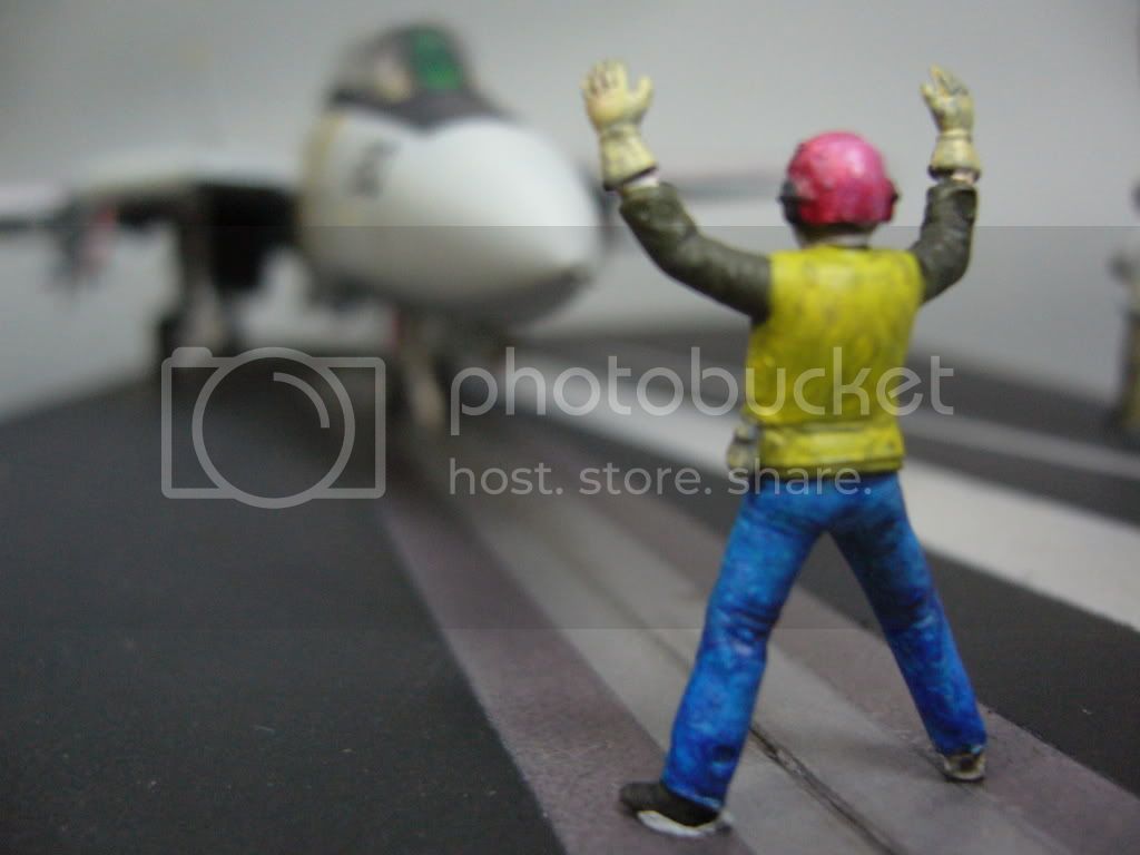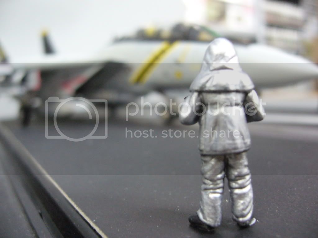 And finally, this F-14A Tomcat of VF-84 Jolly Rogers diorama. This was built during the Aeroscale Bye Bye, Baby group build a few months back. I'm touching up this one with more weathering for the plane and correcting the colours of the jerseys that the deck crew are wearing. These are old photos.