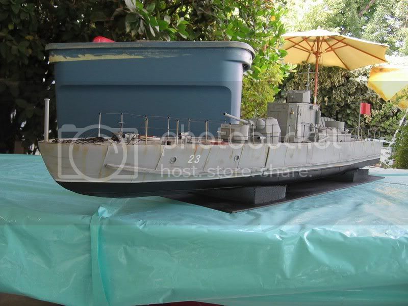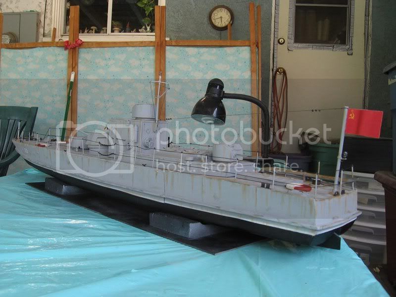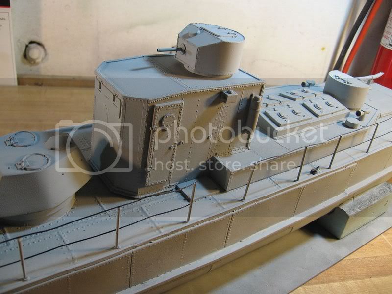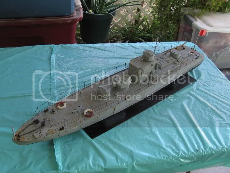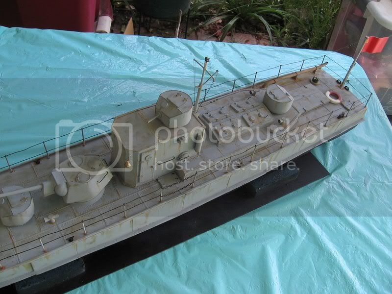 Steve's finished for now & ready for the water. Main turret rotates & he's already thinking of future mods including working MG turrets along with heavier weathering & rust. Being a prototype, he plans on making some adjustments with the kit including more brass & metal parts once the hull goes into production.
