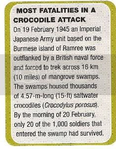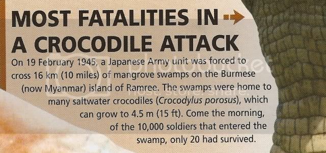 I think that the death toll due to crocodiles is quite an exaggeration. I can imagine that many soldiers seeing how hopeless their situation was would rather commit suicide than be attacked by a croc.
