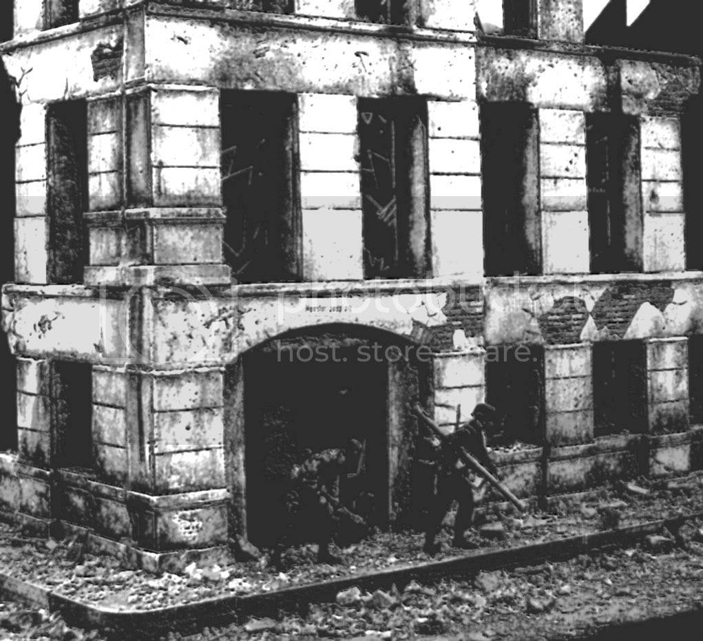 These kits feature beautifully detailed hydrocal plaster castings, laser cut wood windows/doors and shattered glass (a very cool item!), cast rubble & bricks and full color, easy to understand painting & aging instructions.