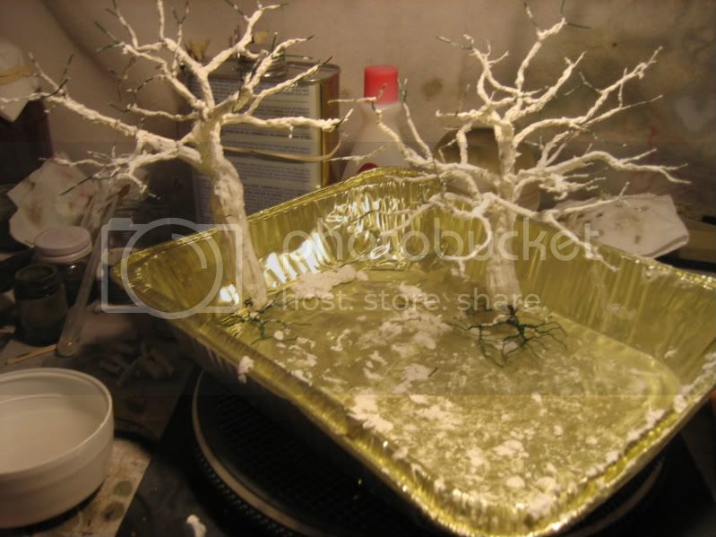 Thanks for the response Brian, the trees were too large to justify the use of magic sculpt so I just used some joint compound and it worked great. I can't believe I didn't use this stuff before. I never thought about letting it sit for awhile before forming it, that really made the difference.