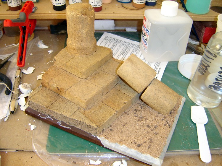 I just remembered what the stuff was which I used to cover the polystyrene foam: Celluclay. It's the same stuff Richard Wondrow uses in the Osprey terrain books. It's basically just a commercial version of paper mache