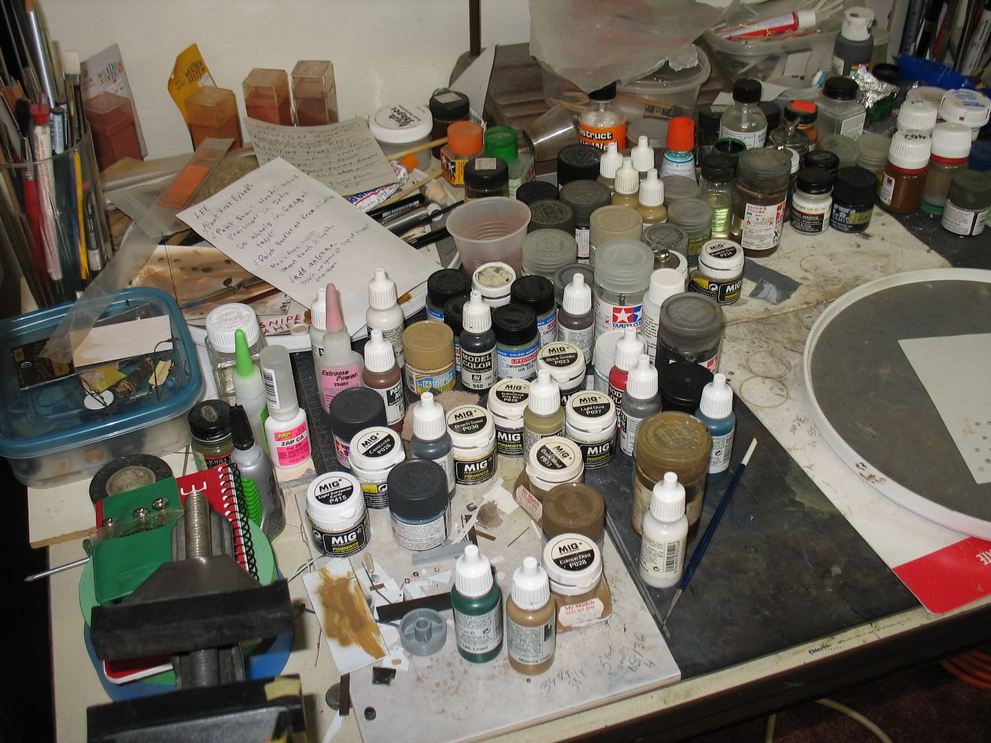 I'm liking the pictures of peoples benches as its good to see the chaos that everyone works in , makes me feel quite normal