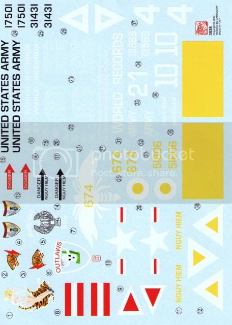 I can't edit my last thread so I will start a new one. I was going through some of my trashed kits and came accross an untouched decal sheet and PE from DML's UH-1D kit 3538. The decals are the only things left.