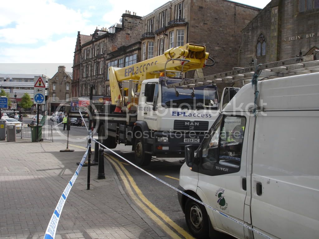 A section of cast iron gutter fell of the roof of shops and flats and between me and the police we had the traffic cut to single file whils I got access to check the building out and get the danger removed. While we were up at fourth floor level THE COMPUTER system on the high reach access platform truck SAID NO !!!!!!!!