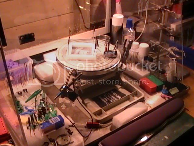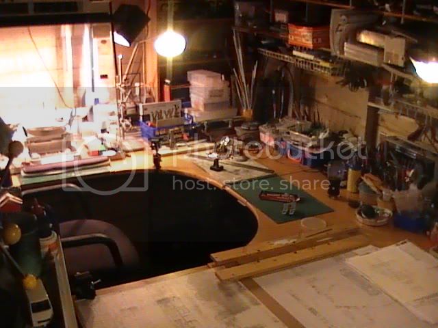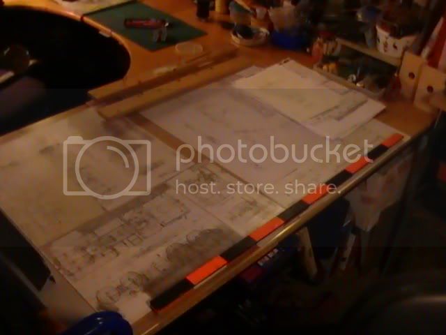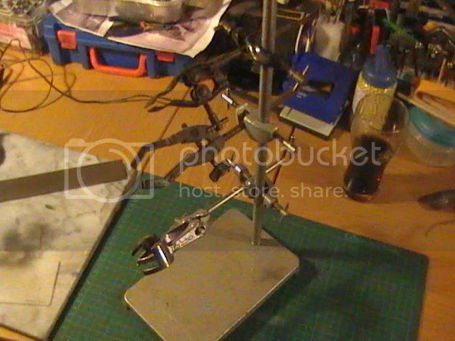 Cutting mats, marble chopping board, metal plate and flexible drill with bits are close at hand. I have a home made jig for setting out chassis construction