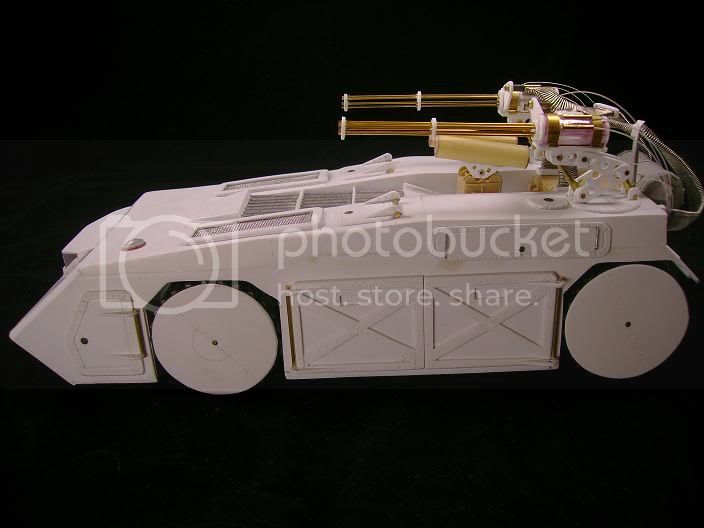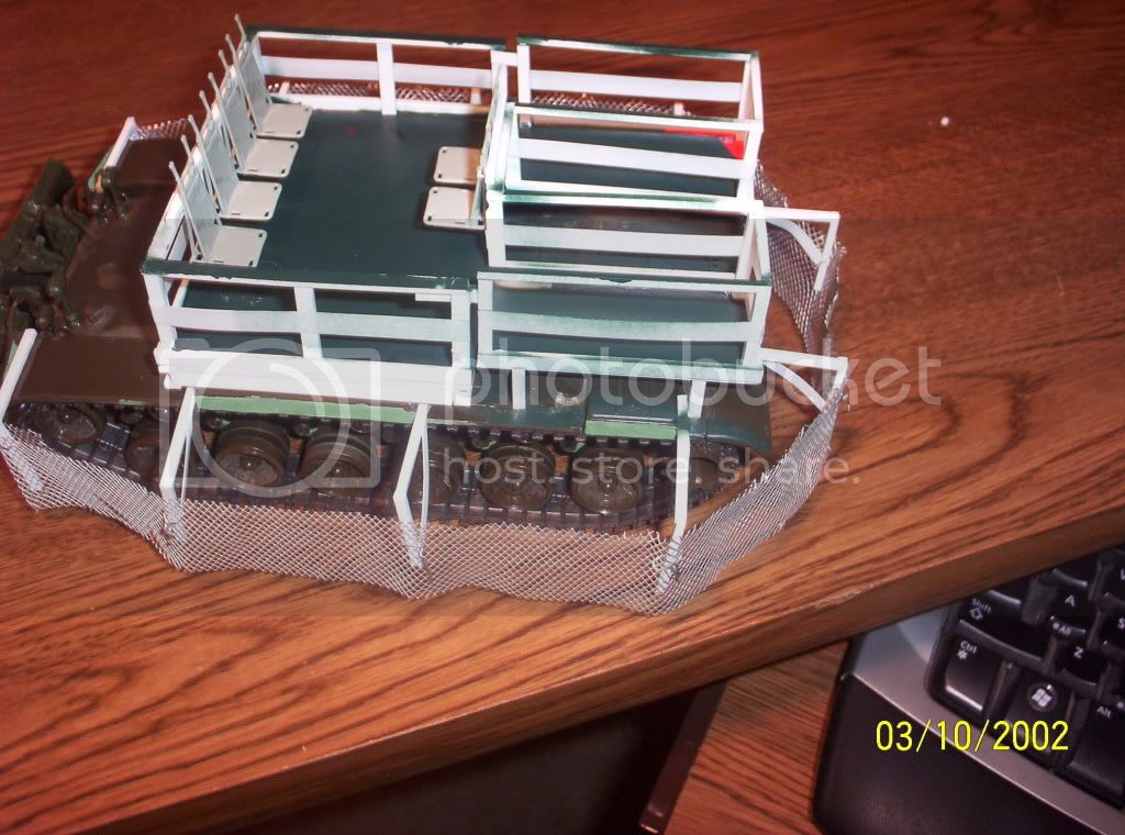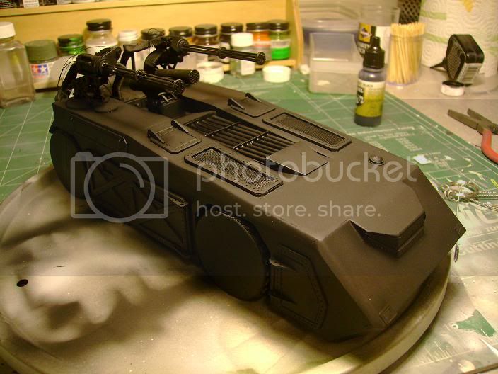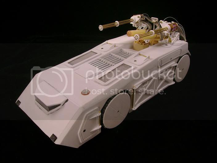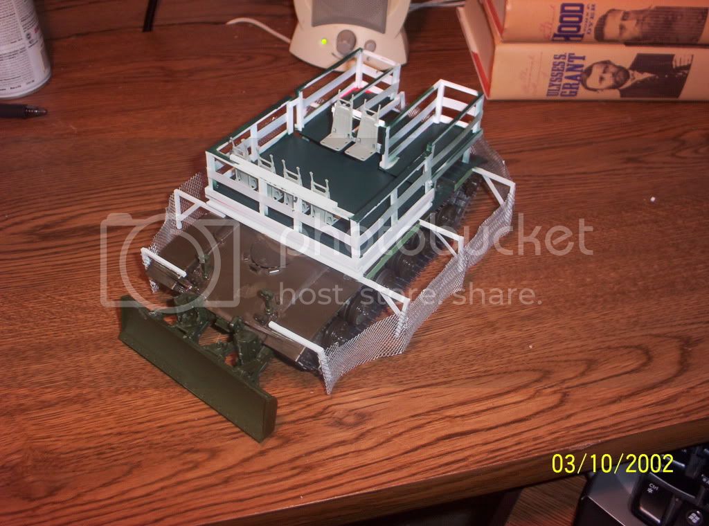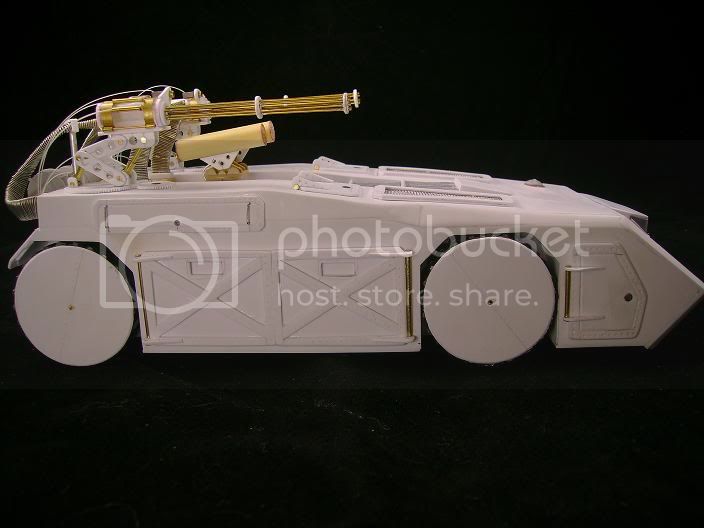 The base of my ride is an old Tamiya M60A2, with everything else scratched (the seats came from a blackhawk kit). Still needs a few things (guns, a cooler, flag, and some zombie bits), as well as weathering.