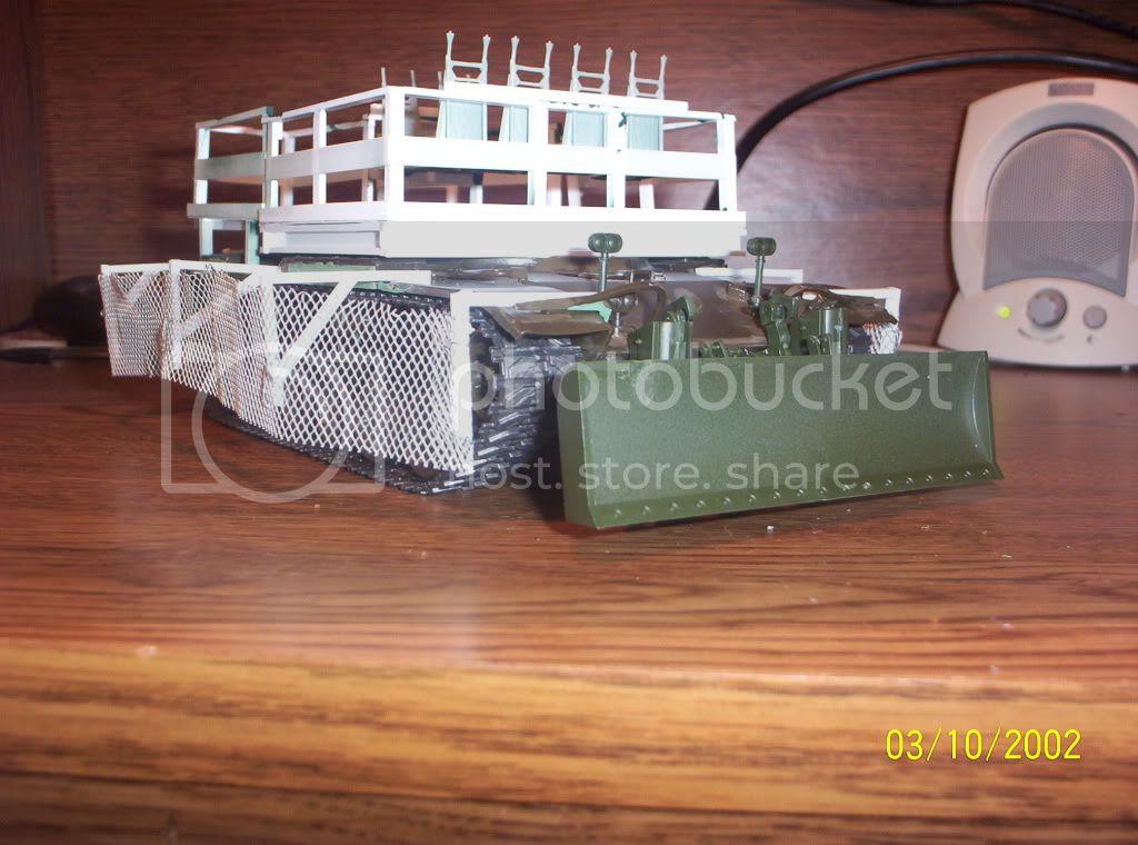 (dangerous in my case) . I am possitive that you could get away with nothing else but those nasty looking runem over things sticking out from the chassis and the dozer blade to just plow em over and into either just road kill or a puddle of nothing left but for the vultures to pick at. Good job so far Bob I can not wait to see what else comes out of the ideas that you are squeezing out.