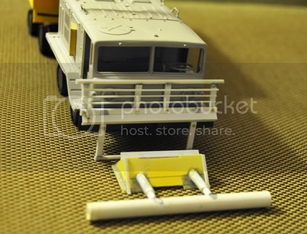 Telescoping bar (upside down) and I will be adding spikes to it .. originally was going to make it look rotating but I went with this. Hmm looking at this, I think I may extend the co-drivers walkway to the pod and add a small access door. This way the crew in back or third driver can reach the pod while the vehicle is in motion or bashing the zombies ...