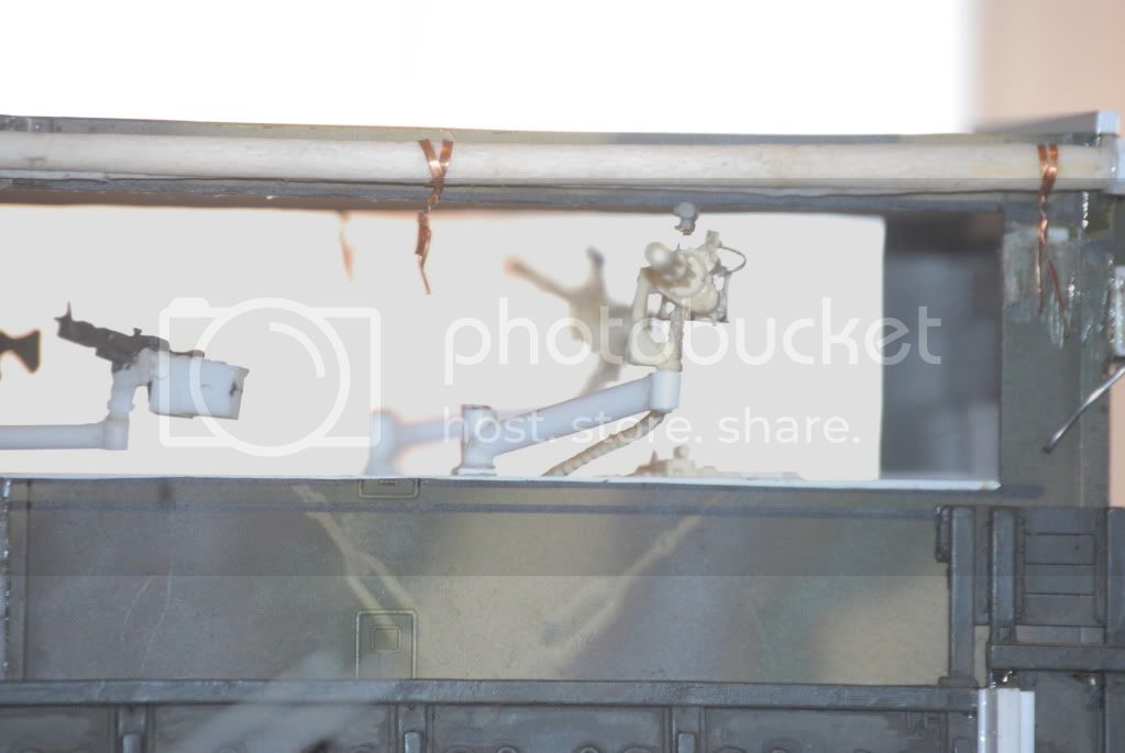 Phill: I approve. Great work. My only additional comment would be a giant trash can next to each of the miniguns to manage the spent brass and links, probably a largish hose coming off the bottom, opposite the ammo feed side, and emptying into the trash can. Might limit the swing arm though... Or you could just kick it outside and skip the re-loading. Anyway, this thing looks awesome and I look forward to the painting.