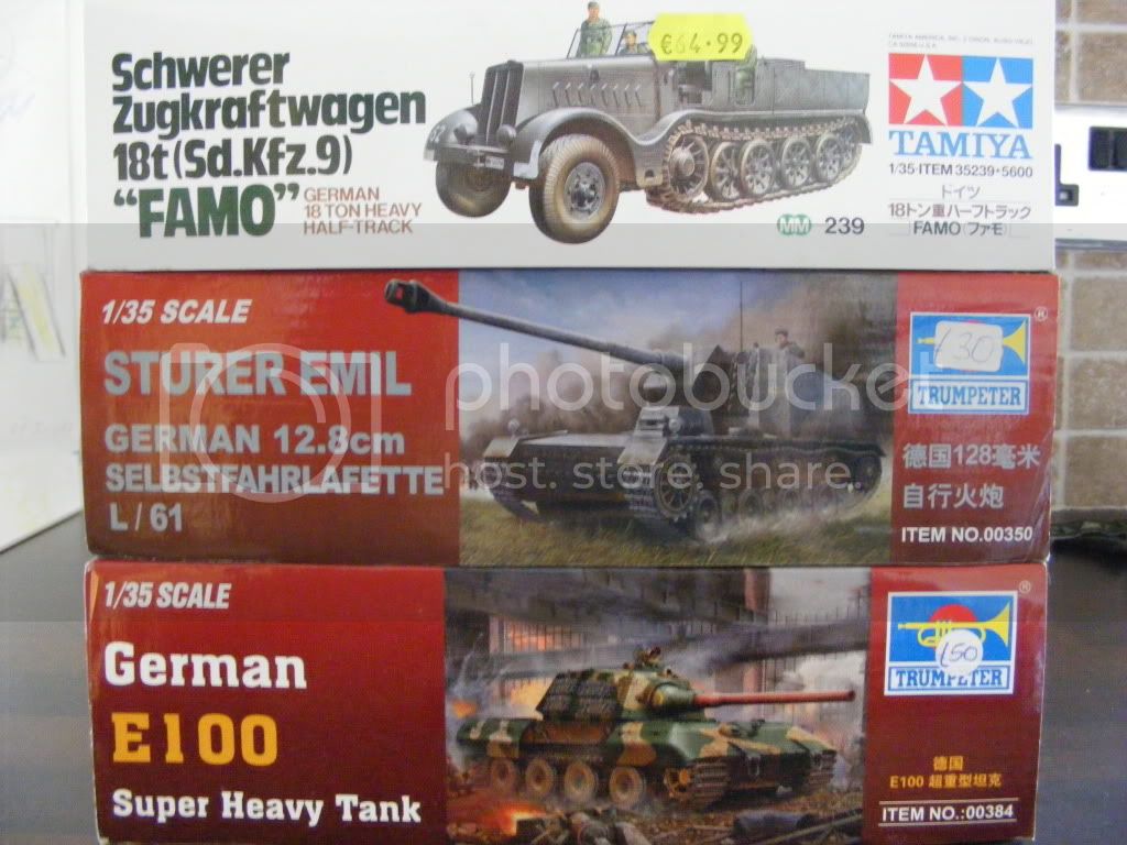 They are all brand new, boxes are in excellent condition, unsealed with all parts present. (IT-28 box is a little bashed and the fantastic Verlinden Detail/Interior set for the LVT4 is very bashed and missing Instructions). Sprues are all still in plastic wrapping (except E100, couldnt help having a good ol look). The Italeri SWS and Bergepanther are in sealed boxes still.