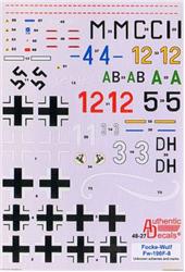 WWII Luftwaffe Focke-Wulf FW-190F-8 Unknown schemes and markings from Authentic Decals in 1:48 scale (AD4827)