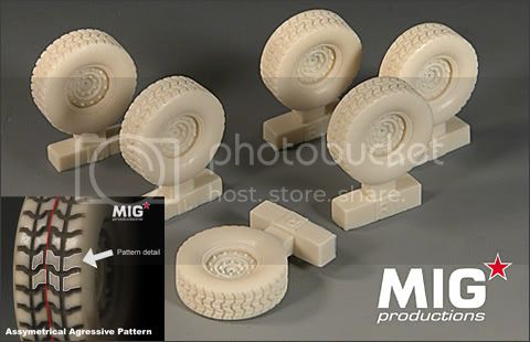 I have a set of Mig Productions Humvee Aggressive Pattern Wheels set MP 35-255 in 1/35 scale that I would like to sell. This set includes 4 right wheels and 2 left wheels, and is made for the Tamiya M1025 kit. PM me if interested Evan