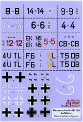 WWII Luftwaffe Bf-109 Aufklerar (Reconnaissance fighters) from Authentic Decals in 1:72 scale (AD7239)