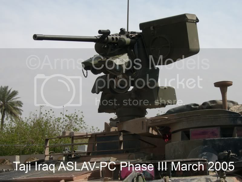 Now, the Dimarco mount is a Phase II cupola and the MR555 is a Phase III cupola. But having said that, the Dimarco on the PC does not mean the PC is a Phase II. You can assume that all ASLAV's in the MEAO after early 2004 were Phase III and all PC's (apart from Ambo's) were fitted with the RWS on the Dimarco mount.