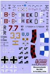 WWII Luftwaffe Me-262 A-1a/Jabo, A-2a from Authentic Decals in 1:72 scale (AD7243)