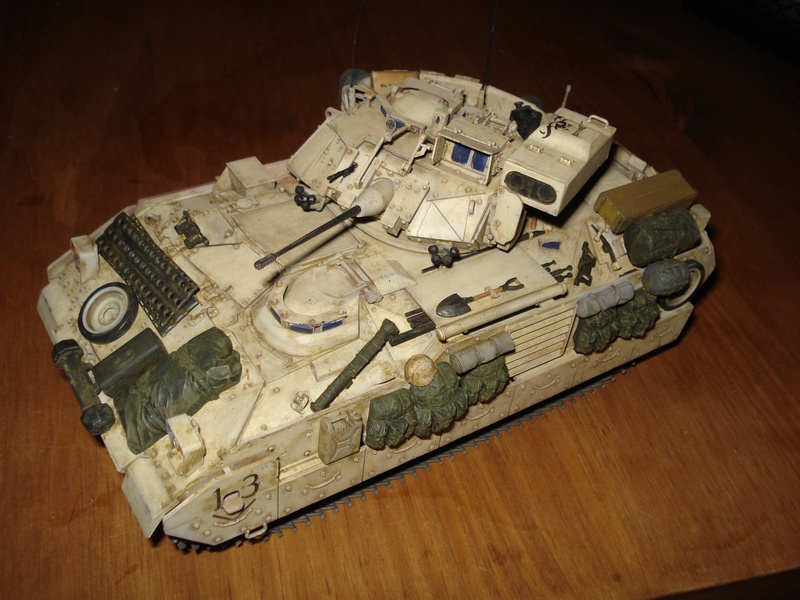 I've got a few that come to mind, but one holds a spot near and dear to my heart. This is the vehicle I commanded for several years. I left the vehicle just prior to deploying to Iraq in early 2003 for the invasion..She took a lot of heat and hits in theater, but her and the new crew all came home in one piece. The kit started off with the M2A2 Bradley OIF and was tweaked into my sled. This has taken numerous awards at contests I've taken her to.