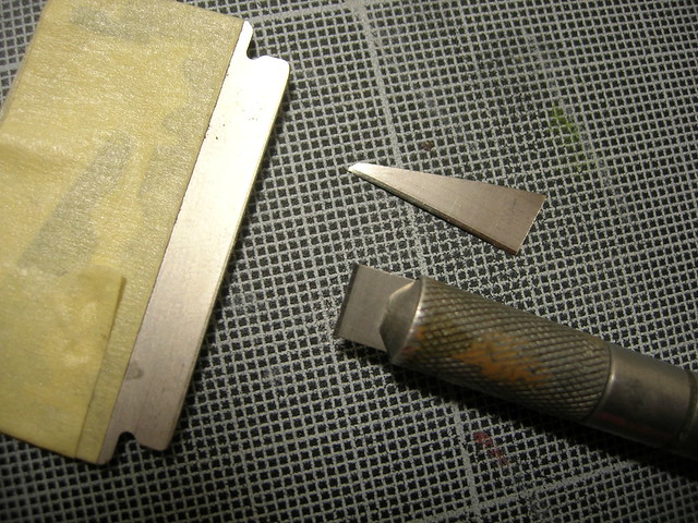 I couldn't avoid little damages to the surface though but that's not a problem of course. Just some filler, then sanding and the job is done. For sanding around details/engravings i made a few simple but very useful tools: