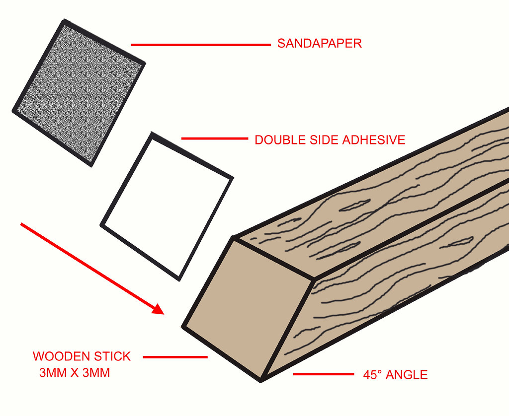 As you can see i just cut some pieces of sprue, tapered them on one end and glued on a piece of plastic sheet with different wet-sanding papers, applied with super glue and grain from 180 to 600.
