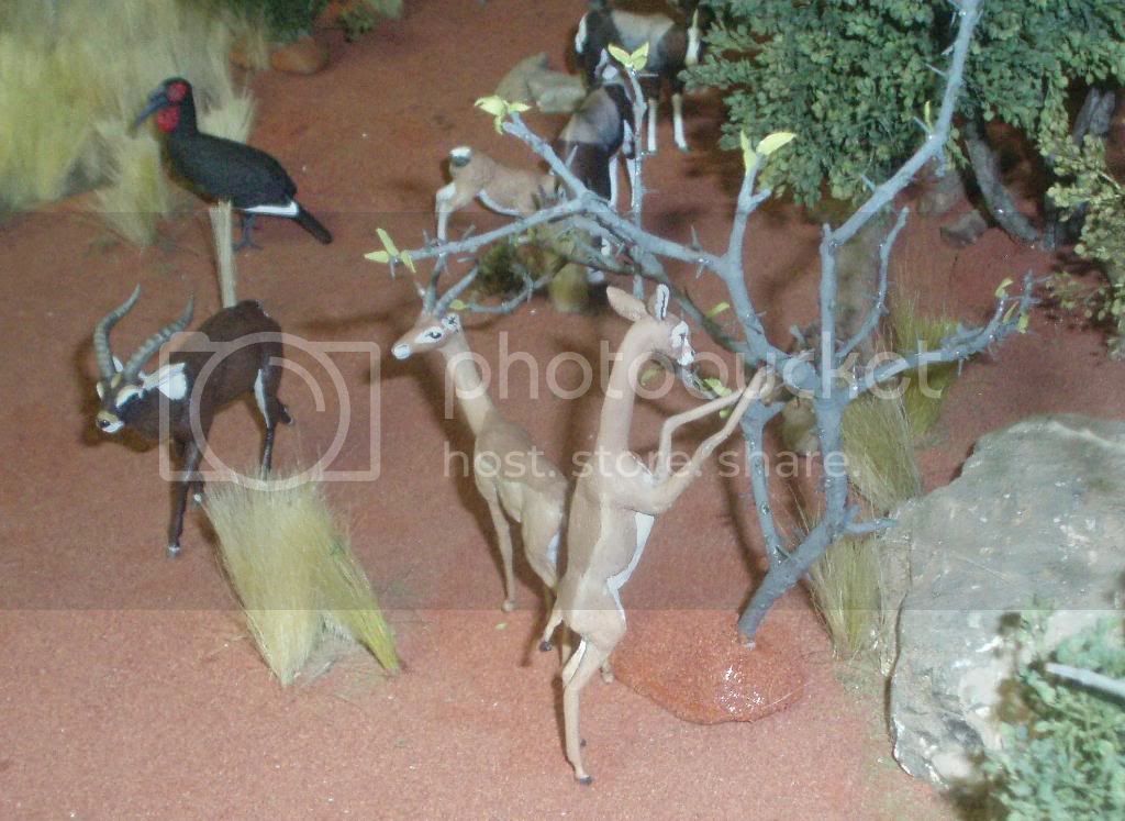 And finally here are some of my African scrub scenes, most of the animals were done by a friend who sculpts for a living and she is the best sculptor for scale animal figures I have ever seen. There are a few that I have done, in this first photo the wart hog in the background is done by me and the bird is done by a Japanese sculptor who does scale birds, he is another fantastic sculptor but he only does birds and he recently retired, I was very lucky to meet a friend of his and now have about 20 done by him.