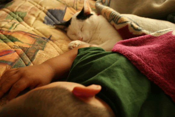 Here is Sherman with Oreo...Oreo was trying to break into my sisters house as a kitten and winded up with him...