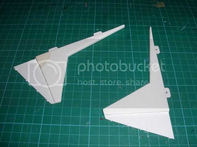 Wings are together. I painted the insides mat white to prevent any bare plastic being seen when complete. I think the ram-jet engines are supposed to be here given the large outlets at the rear and intakes in the leading edge. I would have preferred to paint the whole area black, including the upper surfaces of the rear wing, but the studio builders chose an allover white scheme. Maybe on another one...
