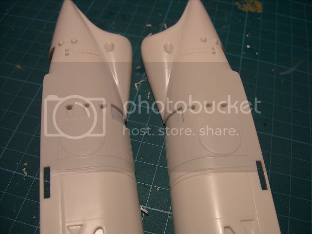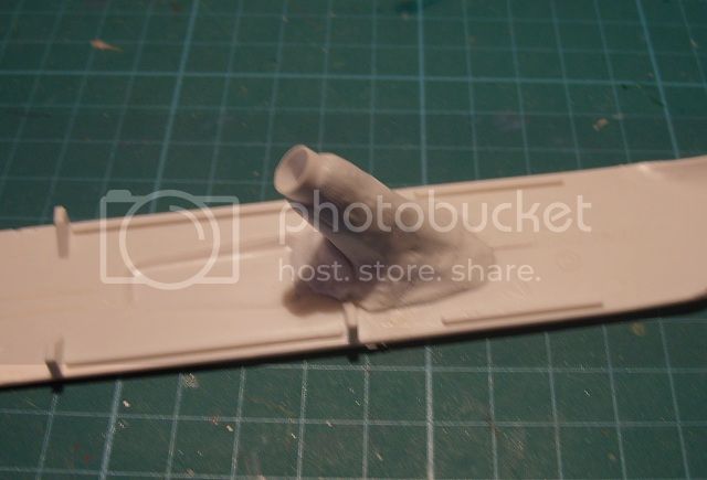 I stuck in some epoxy putty on the inside of the fuselage behind the thrusters. As I'm drilling them out I didn't want to be able to see straight into the model through them.