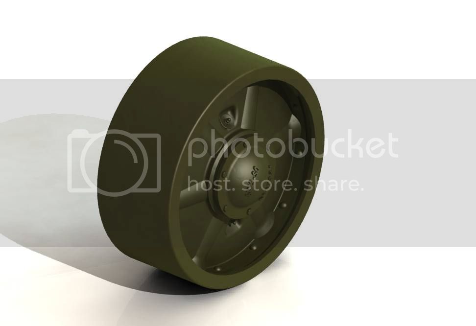 The new idlers for DML and TASCA kits are available. These have the outer rim undercut to represent the original parts. They also have casting marks on the bearing cap.