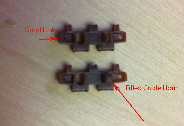 On 36 of my links one of the guide horns is filled. Although there are extra links packed in, there is not enough links for me to make 4 80 link runs without these bad links. I could manually cut and trim the links, but that's even more work I shouldn't have to do.