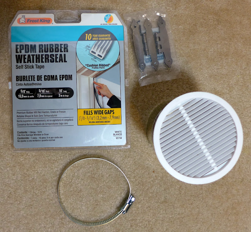 Window gaskets, some cabinet hinges, an exhaust outlet, and a duct collar: