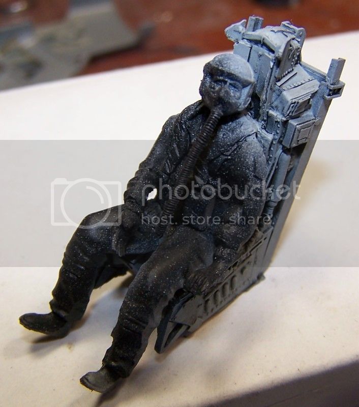 I made the pilot from scratch and spare figure parts, which he is sculpted onto the BB seat..heres a photo ,as you can see ,he's been primed..and a little dusty..no other work has been done on the kit
