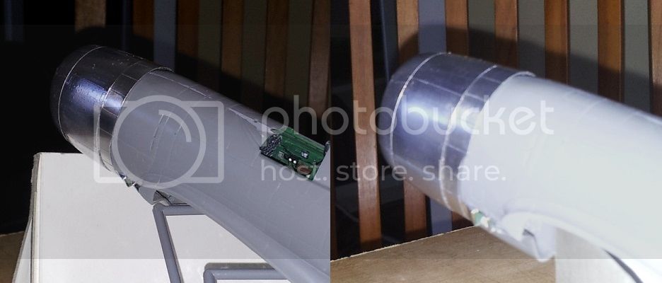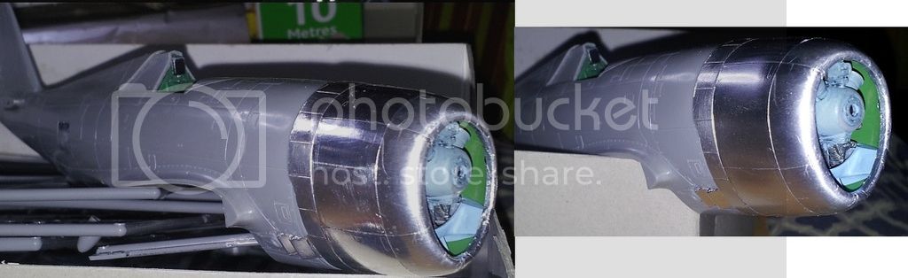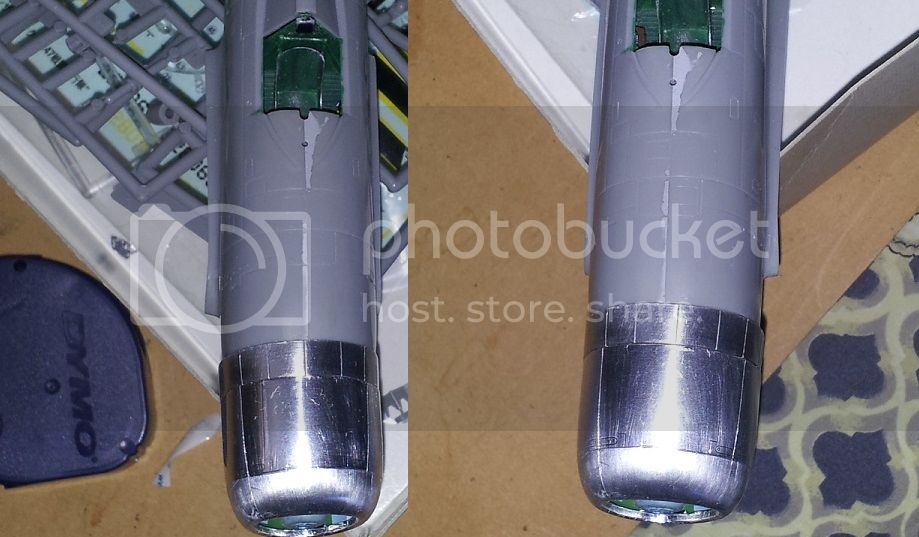 The Future did not fog when I airbrushed it to the metal, but changed the reflective or refractive properties of the metal. I'm not sure which is the proper description. I've made some comparative pictures where the pre-Future photo will be on the left of the image, and the with-Future on the right.