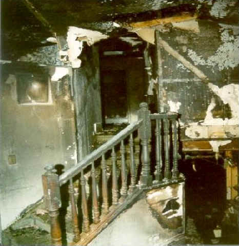 The fire didn't get out of hand. It was on the balsa wood roof beams. After I blew out the flame, the wood continued to burn internally. I ought to have put the fire out with water to prevent what happened. alas!