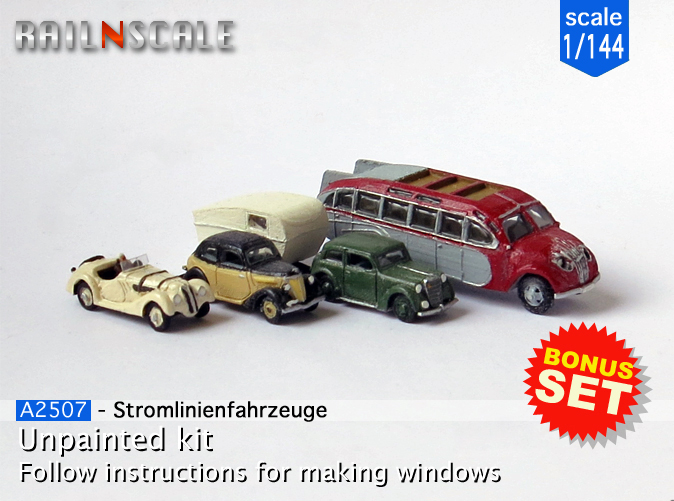 In the meanwhile RAILNSCALE offers various car models in 1/144th scale too. The car models are nicely detailed and would fit in any diorama in scale 1/144.