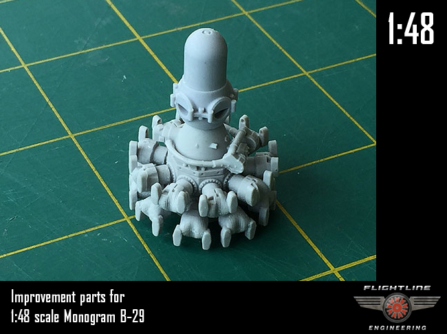 This resin kit contains 179 individual parts, and is intended to vastly improve the Monogram 1:48 scale B-29 Superfortress.