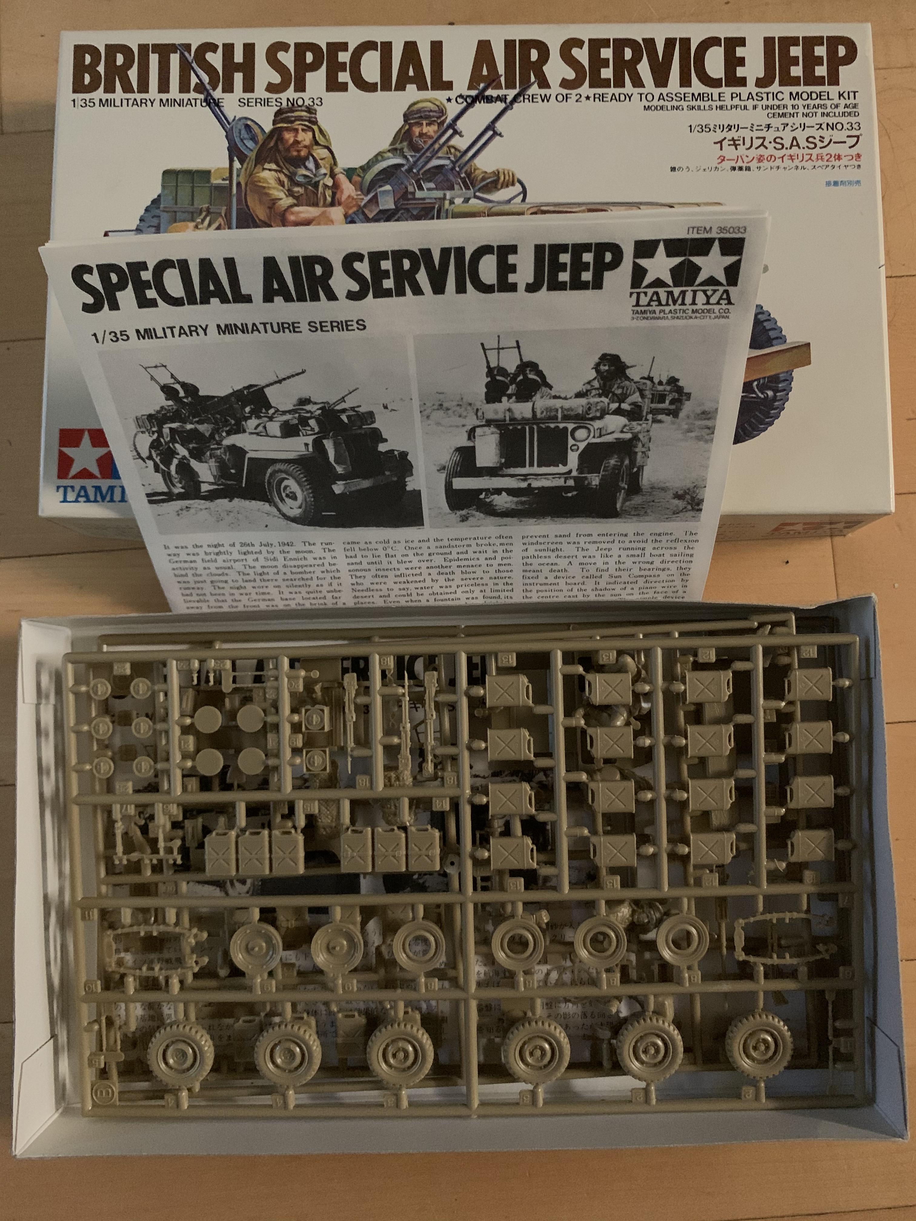 Looking for an unbuilt Tamiya kit #35033. It's the old SAS Jeep with two figures and lots of extras. I would be willing to buy or trade for it. I have A lot of kits to trade if you're interested. USA and Canada only please. Thanks in advance.