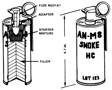Or an AN-M83 White Smoke Grendae. "The grenade has a forest green body with light green markings, a blue band, and a white top."