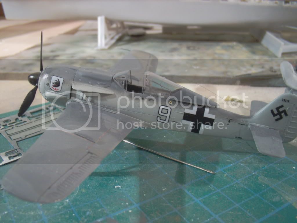 i meant the little "c" shaped thing behind the trailing edge, which actually turned out to be a bit of scrap plastic, not the wheel well part i had cut off the fret, then left, that can be seen under the prop in the first pic.