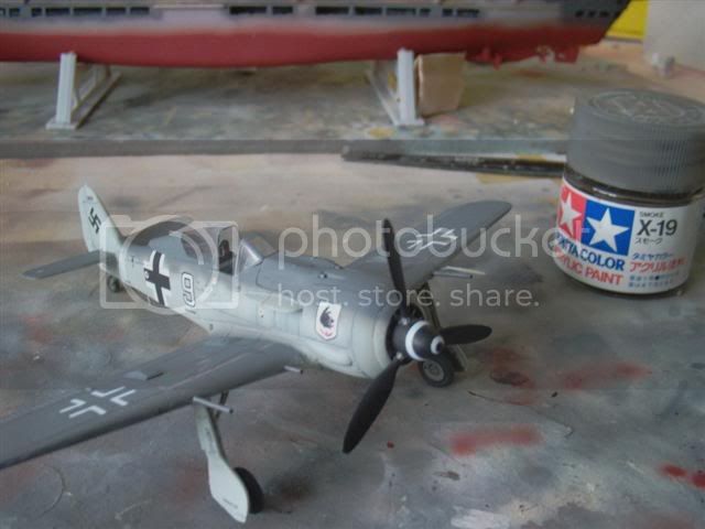 i'm going to give it some exhaust staining with the tamiya smoke in the background, get the radar aerials on, and the antenna wire fixed to the tail and shes done