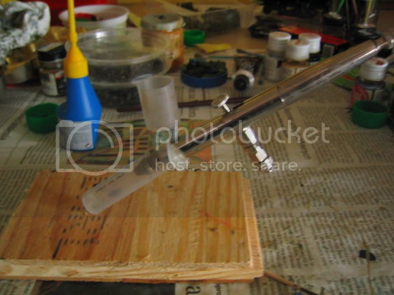 I made my airbrush holder of piece of board and syringe. I'll provide a pic later so you could see how it looks.
