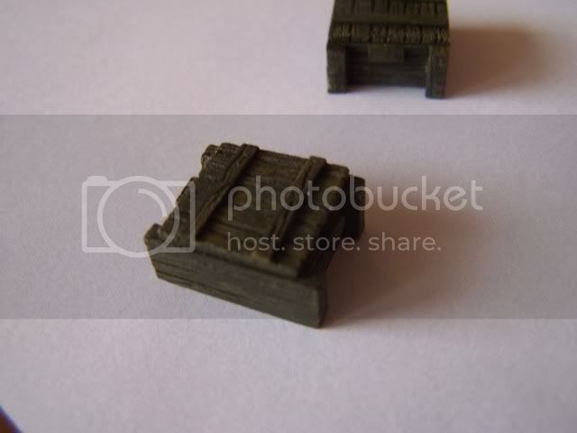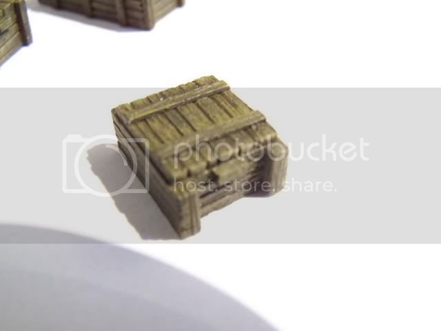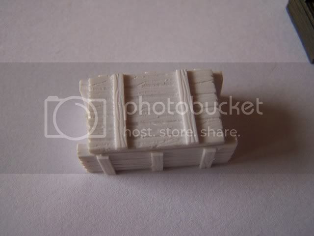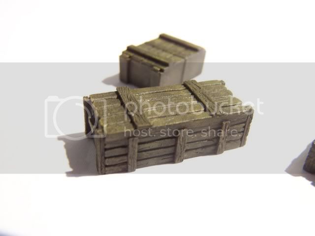 I recently bought some plastic sheets and experimented a little. As I need a lot of ammo and supply crates in my current D-Day Diorama project, I thought it might be a much cheaper solution to build them myself. I am pretty happy with the results plus it was a lot of fun to build them, not to mention that i learned a lot of new techniques building these crates myself. Anyhow the crates were airbrushed with Tamiya olive drab paint. Then I applied a "washing" with heavily thinned brown oil paint. The final touches were added with highlights done with olive drab and natural wood (valejjo) using a dry brush technique. The wood grain was done with an old cutter blade.
