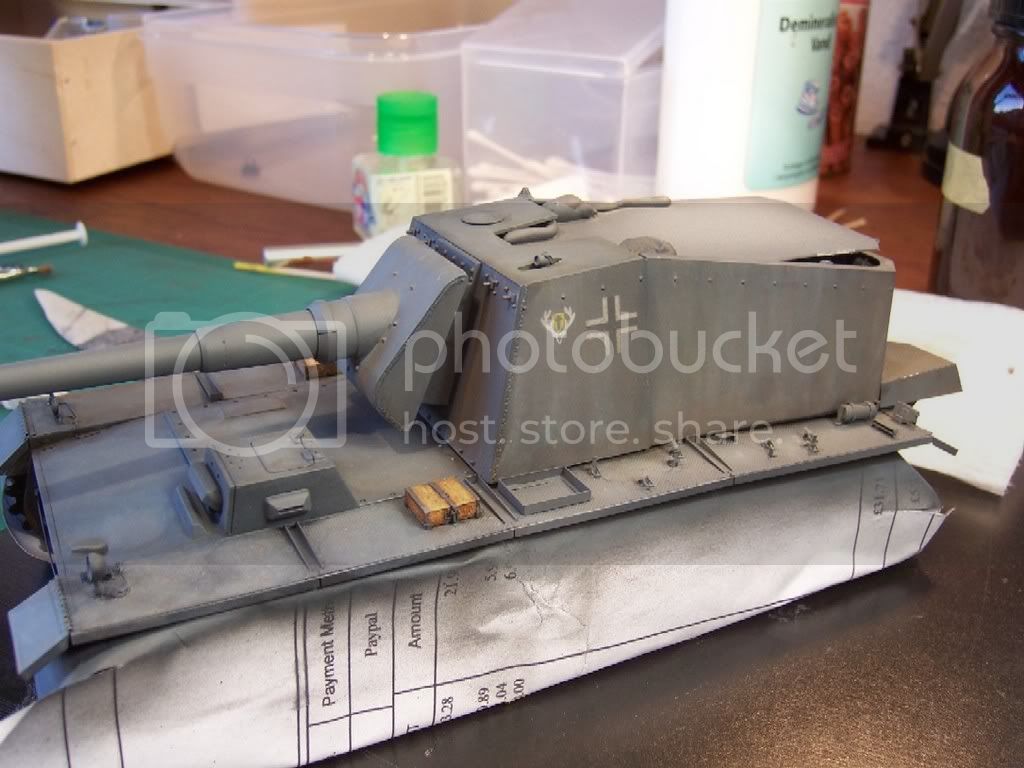 Så har hele baduljen fået en gang Vallejo model air (german grey). "plankerne" blev dernæst malet med Vallejo model color (buff).