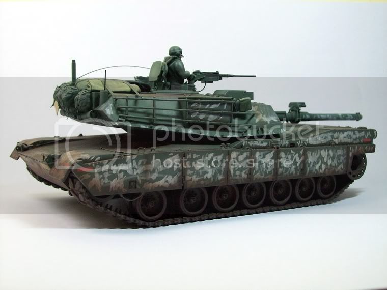 This is my last work... a M-1 Abrams with winter scheme color used in the '80s in Europe exercices. The kit is Tamiya´s old model with many modifications...