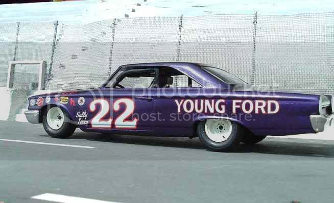But with current tracks looking so much different than the vintage ones that my models would look at home on and very few color pictures from the '50's and '60's I've had to resort to building my own. I've built several "tracks" to use like this "dirt" track and some photoshop "speed blur" to add a little flavor.