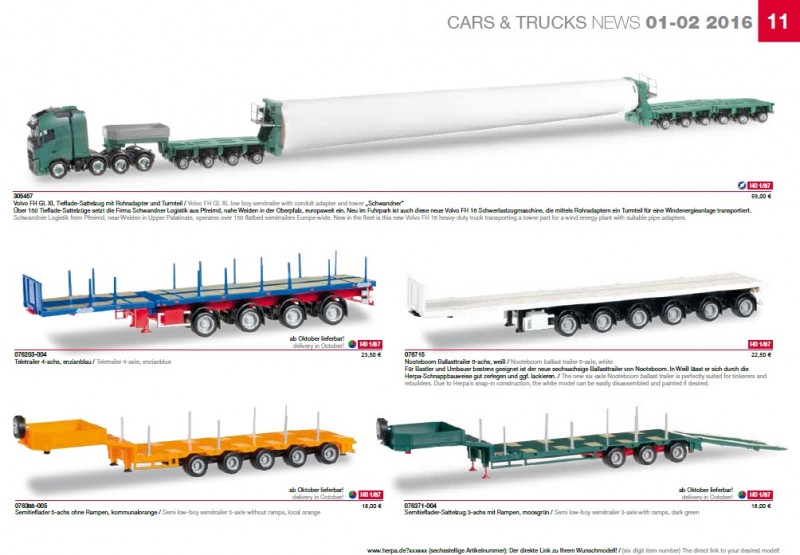 Heat up the cold months with dozens of  HO (1/87), O (1/43) and TT (1/120)  Herpa models shown in these pages.   Models both brand new and established models in new liveries will fill shelves and ultimately the display cases and layouts of modelers.